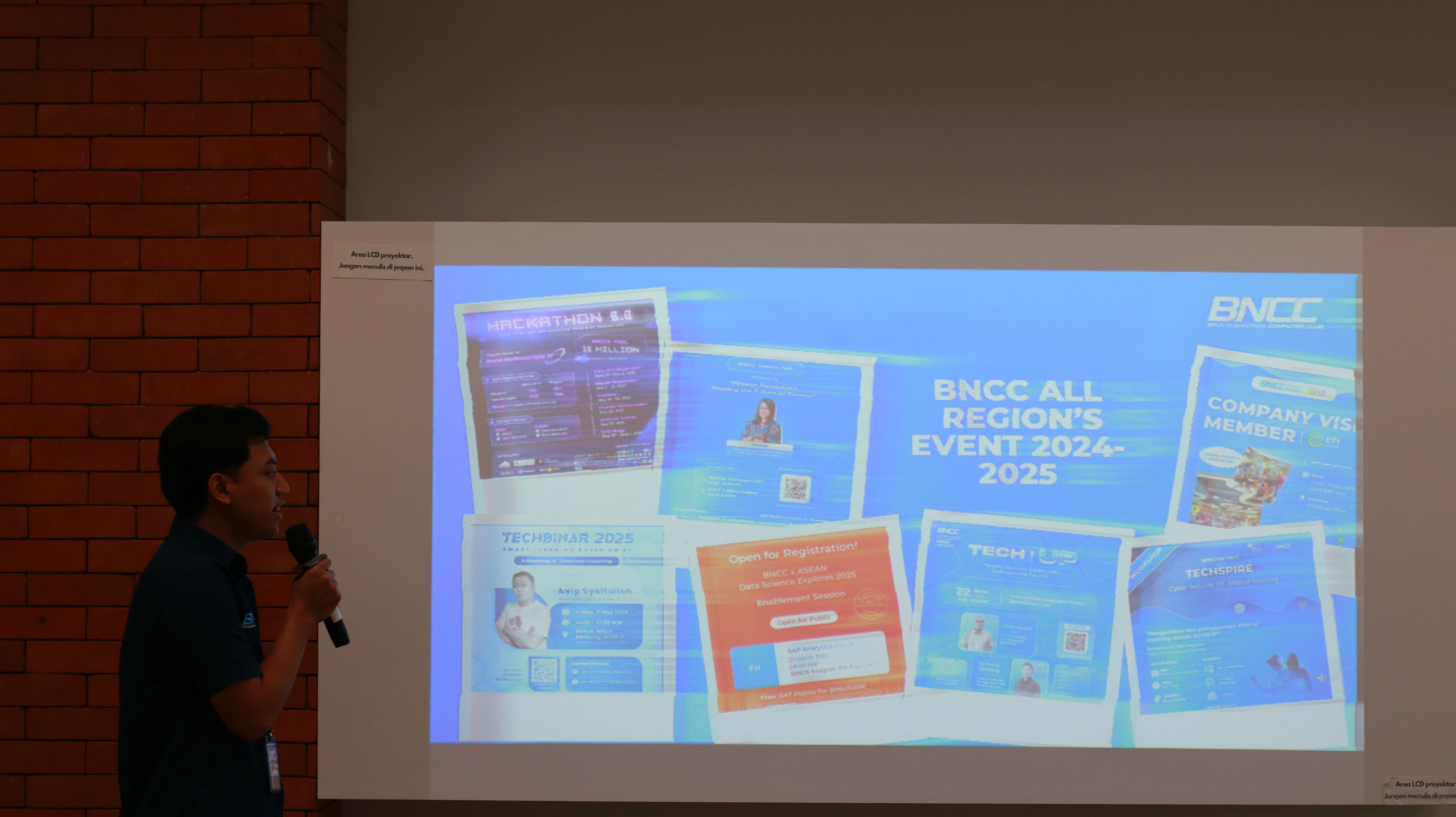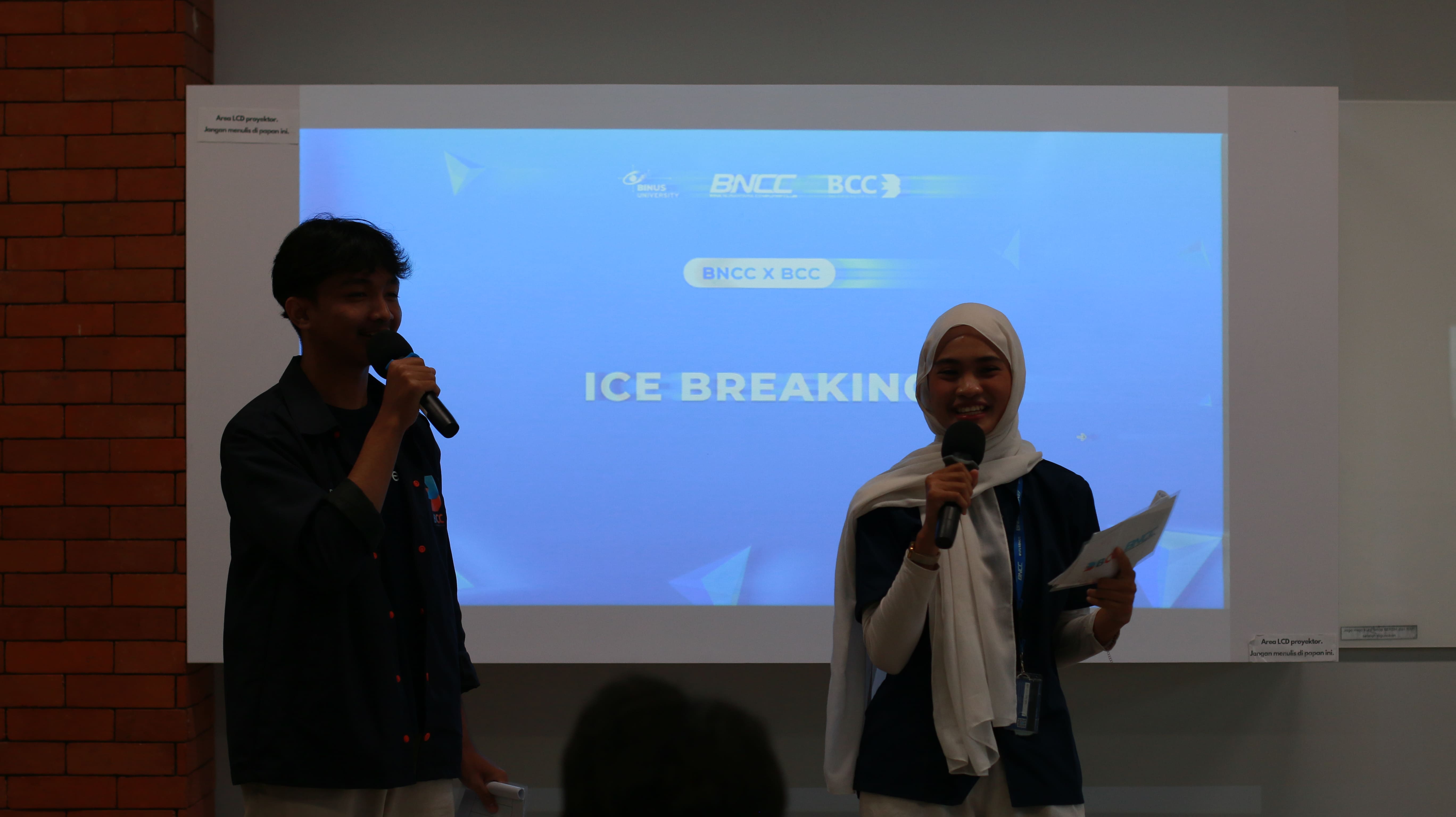 Biar makin akrab, sebelum sesi presentasi ada segmen ice breaking yang diselipkan di sela-sela agenda, yakni tebak ciri-ciri! Mekanismenya sangat simpel, MC akan membacakan ciri-ciri salah satu personil yang hadir di acara pada saat itu, lalu salah dua peserta yang terpilih menjadi penebak diharuskan untuk menunjuk orang mana yang dimaksud oleh sang MC. Permainan yang dirancang tim EEO BNCC ini berhasil memacu semangat kompetisi yang fun dan bikin semua peserta makin akrab. Hasilnya? Suasana pertemuan jadi nggak cuma edukatif tapi juga menyenangkan!