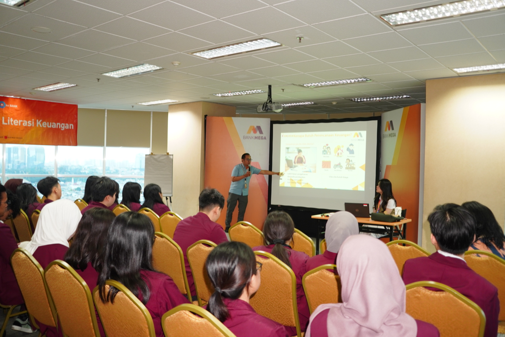 Sesi materi pertama menjadi salah satu rangkaian acara yang memberikan wawasan berharga bagi para peserta, dengan mengangkat topik “Literasi & Inklusi Keuangan Untuk Generasi Muda”. Melalui sesi ini, Bank Mega menyoroti pentingnya membangun pemahaman finansial sejak dini, khususnya bagi generasi muda yang akan menghadapi berbagai dinamika ekonomi di masa depan. Peserta diajak untuk mengenal dasar-dasar pengelolaan keuangan, memahami manfaat layanan perbankan, serta melihat bagaimana inklusi keuangan berperan dalam mendorong kesejahteraan dan kemandirian masyarakat secara lebih luas. Sesi ini juga berlangsung sangat interaktif, dengan antusiasme peserta yang terlihat dari banyaknya pertanyaan dan diskusi yang diajukan selama sesi berlangsung.
