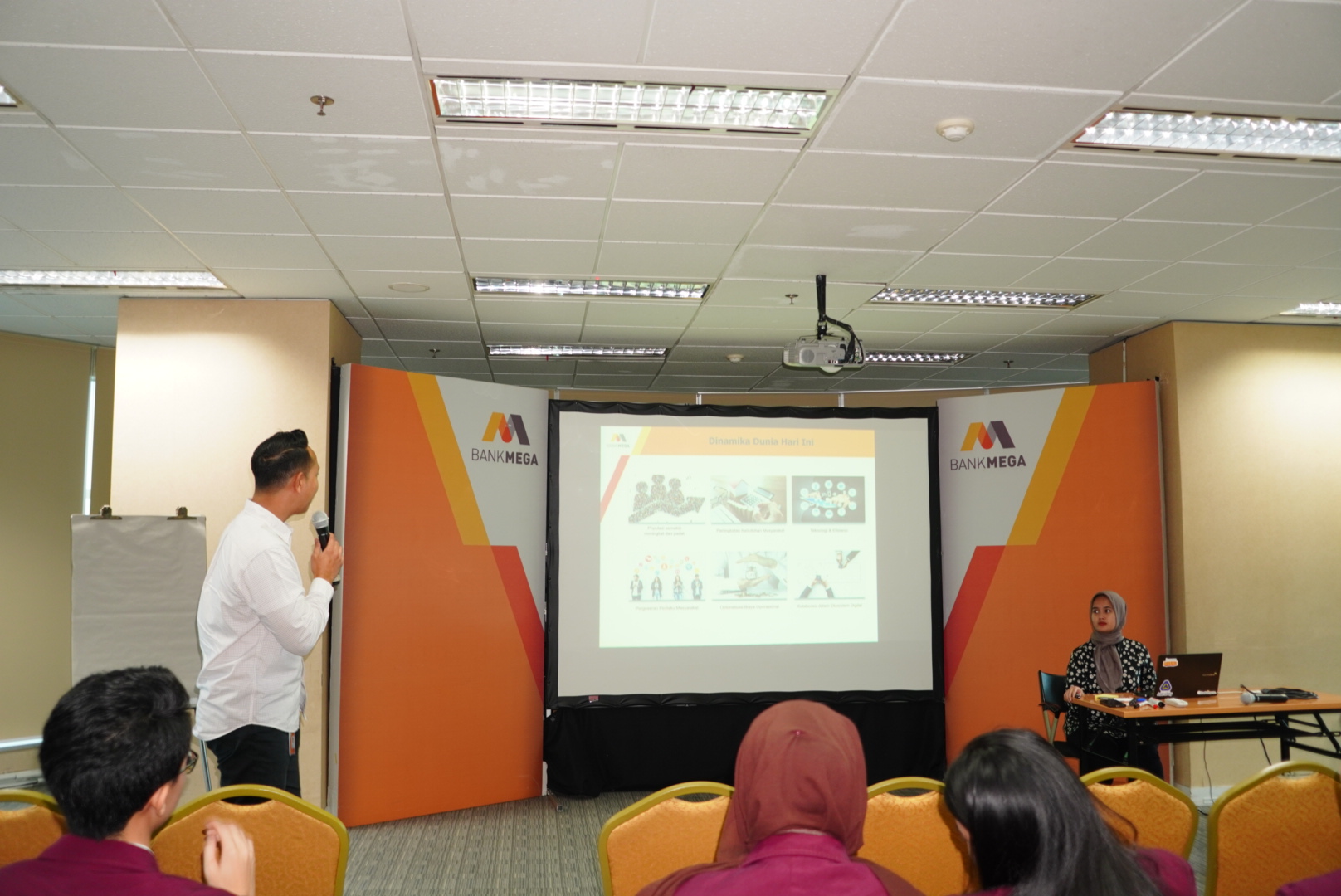 Sesi materi kedua menjadi bagian yang sangat relevan bagi para peserta, khususnya mahasiswa dan calon lulusan, dengan topik “Skillset dan Job Role untuk Fresh Graduate di Sektor Perbankan”. Dalam sesi ini, para pembicara dari Bank Mega memberikan wawasan mengenai berbagai peran dan peluang karir di industri perbankan, serta kompetensi yang dibutuhkan untuk dapat bersaing di dunia kerja. Peserta juga mendapatkan gambaran tentang keterampilan yang perlu dipersiapkan sejak dini, baik dari sisi teknis maupun soft skill. Sama seperti sesi sebelumnya, sesi ini berlangsung sangat interaktif dengan banyak pertanyaan yang diajukan oleh peserta, sehingga diskusi berjalan aktif dan memberikan kesempatan untuk memperoleh insight langsung dari para profesional di bidangnya.