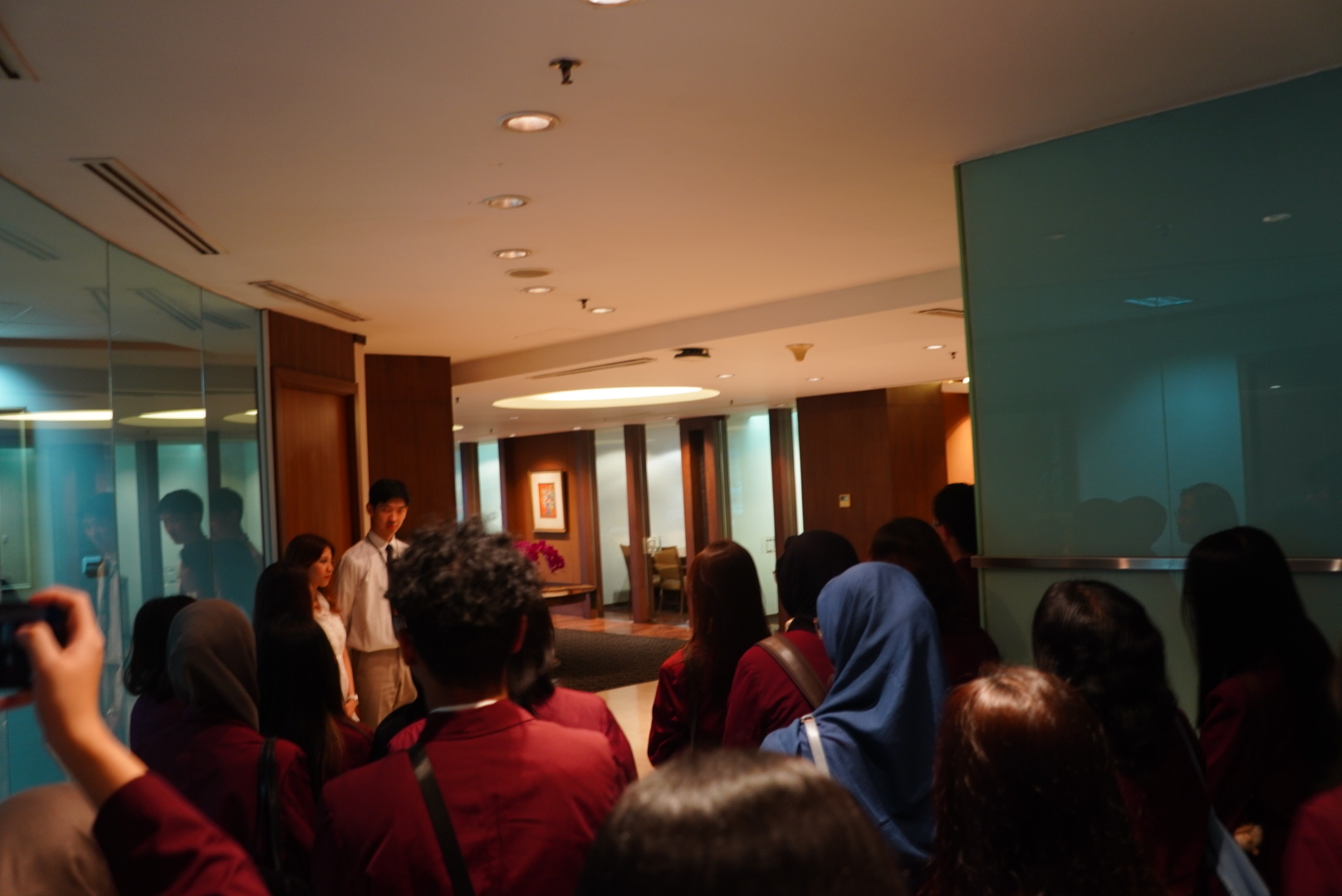 Kegiatan kemudian dilanjutkan dengan sesi company tour, di mana peserta diajak berkeliling untuk melihat langsung lingkungan kerja di Bank Mega. Peserta dapat mengamati suasana kerja yang profesional serta fasilitas yang mendukung produktivitas karyawan. Dalam sesi ini, peserta juga diberikan kesempatan untuk bertanya secara langsung mengenai budaya kerja dan aktivitas operasional di perusahaan. Melalui pengalaman ini, peserta memperoleh gambaran nyata tentang bagaimana sektor perbankan dijalankan secara modern, terstruktur, dan dinamis.