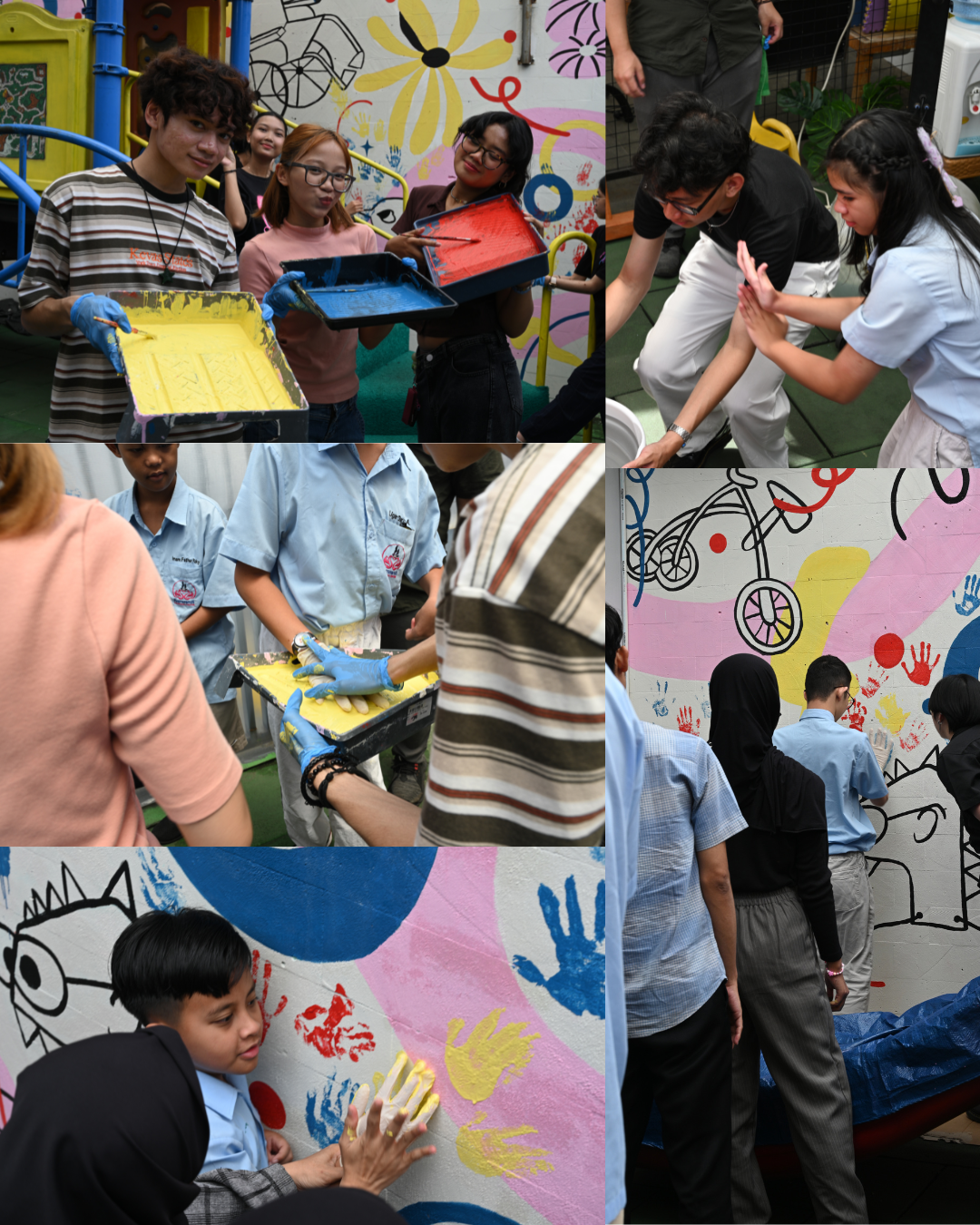 DI hari terakhir, kami mengajak murid Saraswati Learning Center, teman-teman panitia dan volunteer HIMDKV, dan juga panitia pengurus Rumah Disabilitas Jakarta untuk melakukan pengecapan tangan di dinding sebagai bentuk kontribusi dan tanda akan kreativitas kami yang dapat berdampak bagi masyarakat sekitar. Selain itu, ini juga berguna bagi teman-teman difabel dalam melatih sensorik mereka.