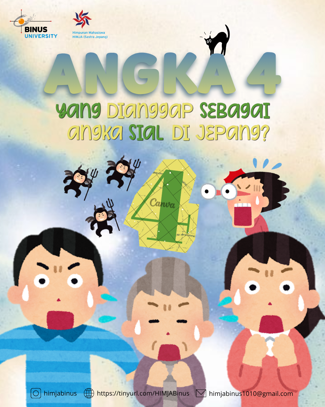 Nah, satu lagi event terbaru HIMJA, Japanese Competition, merupakan perlombaan mengenai kebudayaan Jepang dan indonesia yang banyak diminati oleh masyarakat. Perlombaan ini bertujuan untuk meningkatkan pengetahuan baik itu dalam bidang ke-Jepangan maupun mengenai negara Indonesia. Uniknya peserta pada kompetisi merupakan siswa/i Sekolah Menengah Atas (SMA) yang tentunya memiliki ketertarikan kepada kebudyaan Jepang dan Indonesia. Kira-kira akan seperti apa ya event yang satu ini?