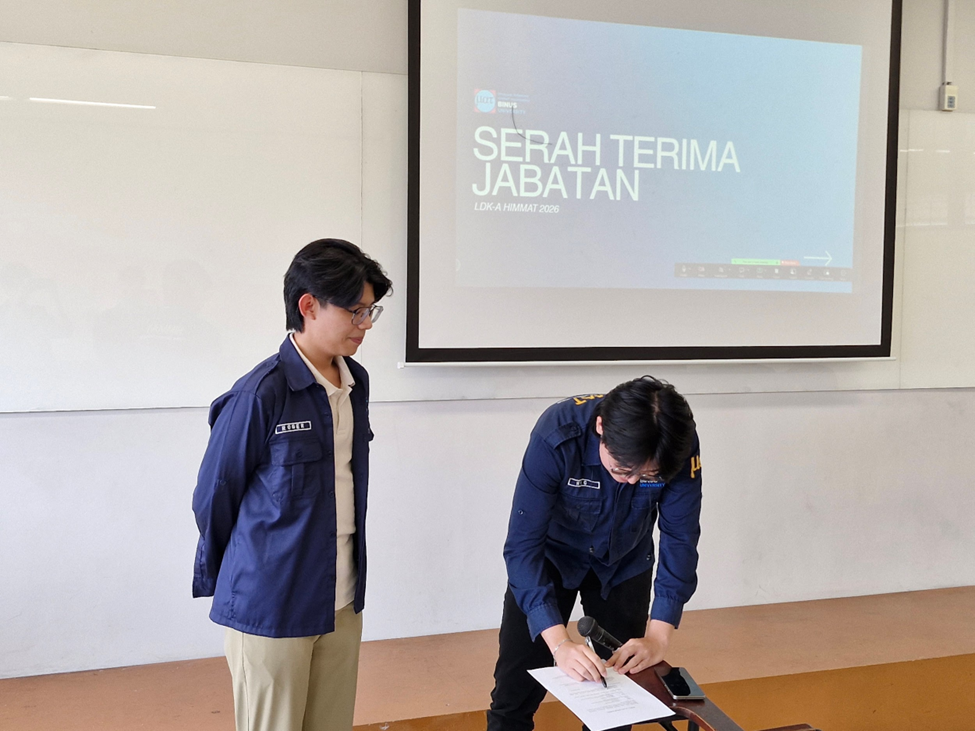 Saatnya melakukan pelantikan aktivis baru. Kemudian, dilanjutkan dengan sesi serah terima jabatan untuk meneruskan kepengurusan HIMMAT dari tahun 2025/2026 ke periode 2026/2027. Serah terima jabatan dilakukan oleh ketua umum dan sekretaris periode 2025/2026, serta ketua umum dan sekretaris periode 2026/2027.