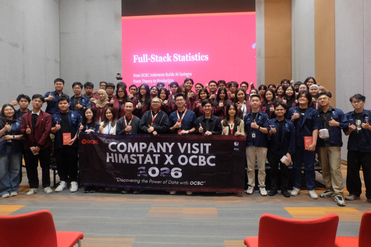 Pada Jumat, 30 Januari 2026, HIMSTAT melaksanakan kegiatan Company Visit ke OCBC dengan mengusung tema “Discovering the Power of Data with OCBC”. Kegiatan ini bertujuan untuk memberikan wawasan kepada mahasiswa mengenai penerapan data dan analytics dalam pengambilan keputusan di dunia perbankan, sekaligus mengenalkan lingkungan kerja profesional di OCBC.