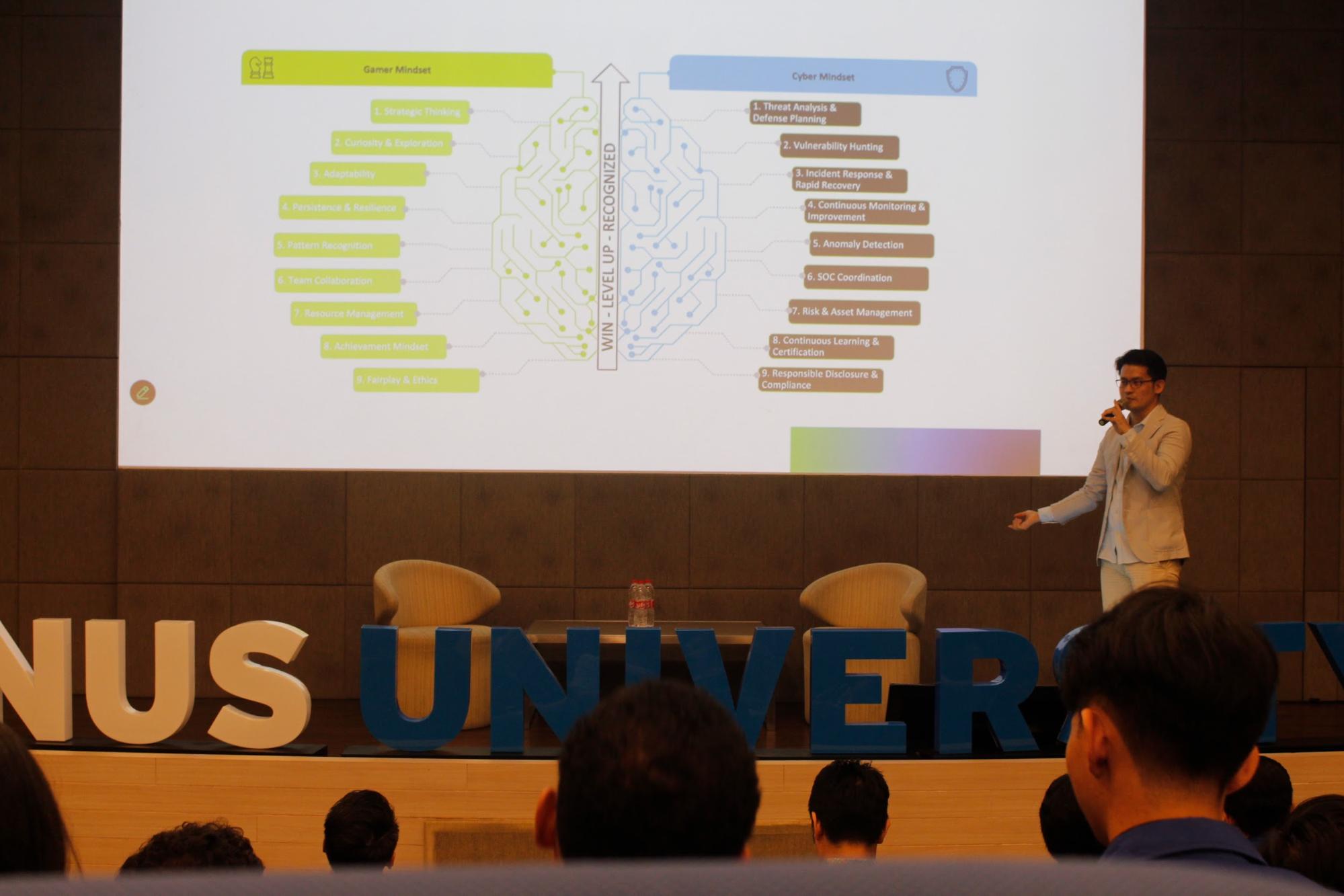 Melalui talkshow ini, mahasiswa BINUS University diharapkan dapat memperoleh wawasan baru mengenai dunia cybersecurity, khususnya dalam memahami bagaimana pola pikir seorang gamer dapat diterapkan dalam membangun keterampilan pertahanan siber. Seorang gamer umumnya memiliki kemampuan berpikir strategis, ketekunan, serta kemampuan pemecahan masalah yang tinggi, karakteristik tersebut dapat menjadi dasar penting dalam mengembangkan keahlian di bidang keamanan digital.