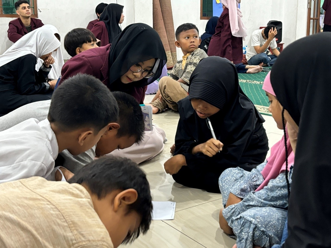 Sebagai penguatan materi, peserta mengikuti permainan “Susun Huruf Hijaiyah” secara berkelompok. Kegiatan ini membantu peserta meningkatkan konsentrasi sekaligus memperkuat dasar pengetahuan keislaman mereka.