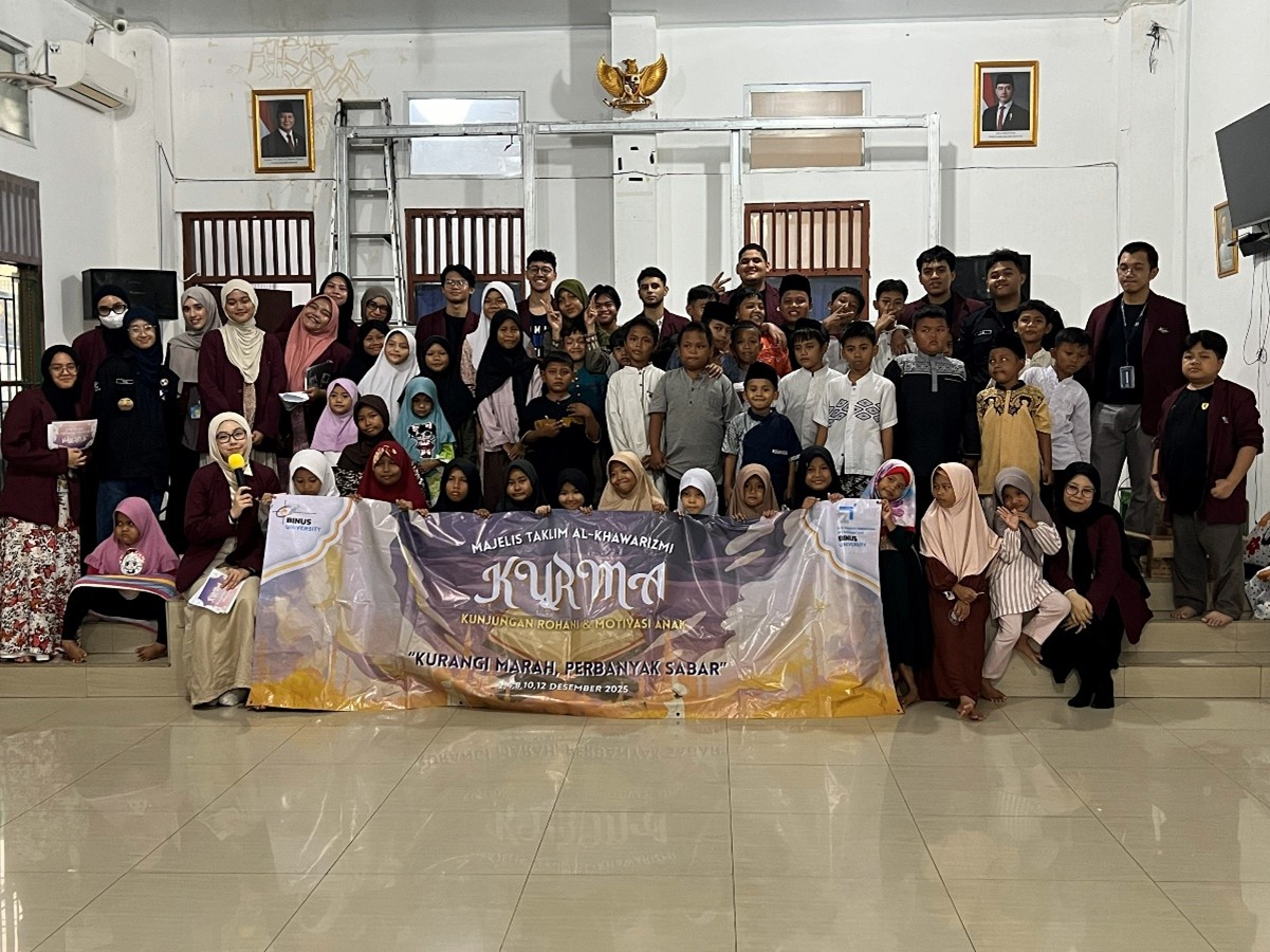 Program Kegiatan Masyarakat (PKM) KURMA (Kunjungan Rohani dan Motivasi Anak) yang diselenggarakan oleh MT Al-Khawarizmi BINUS University telah terlaksana dengan baik di Panti Asuhan Anak Muhammadiyah PCM Kembangan, Jakarta Barat. Kegiatan ini dilaksanakan selama lima hari, yaitu pada 2 Desember, 4 Desember, 8 Desember, 10 Desember, dan 12 Desember 2025. Seluruh rangkaian kegiatan berjalan dengan lancar serta mendapat antusiasme tinggi dari anak-anak panti asuhan dan dukungan penuh dari pihak panti serta panitia.